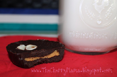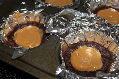 So don't laugh had to line my muffin pan with tin foil! But it worked perfect. Mkle up a batch pour in your cups, let set. Once hardened use 1/2 tsp of almond butter. Put a dollop in the middle and spread it out a little, but not to the edge.