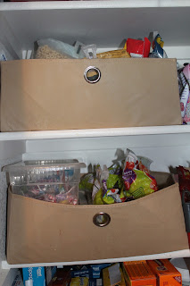 Another broken down household item I saved was from an flat screen console. It came with canvas boxes that my son insisted on siting in. So I had to get baskets to replace them! I saved the canvas drawers for my kitchen pantry. Great to corral all the snacks. The kitchen pantry can be a nightmare. But adding a few of these along with some dollar store wire baskets helped a lot. Even when it starts to get messy the food stays organized. Somewhat protected from the dumping