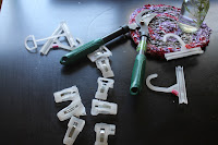 This was a total freebie. These two buckets were 'found objects'. As  in 'found in my back yard'. Cleaned up they make great counter clutter catchers! The best thing about the metal buckets is also a safety measure. I can curl my hair and not accidentally set it on something melt-able. I am VERY good at that. It also keeps it up off the counter from little hands. They are always around my ankles so I am super paranoid.