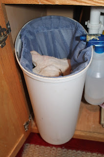 This is another one of my: 'I will keep stuff because it will be handy later thingies'! I had one of those laundry sorters, but I now have no room in the new house. But I kept the bags around. I also had this trash can that was missing the lid for hangers in the laundry room. Essentially taking up space, didn't really need the hangers in there.