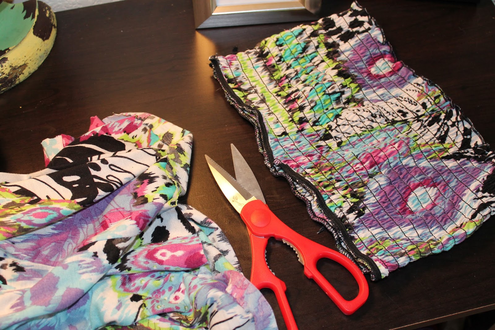You are going to want to cut off the top portion of the maxi dress. This is when you will want to cut it to the length that fits you! (Psst.. if you know me by now, save that bandeau top!)