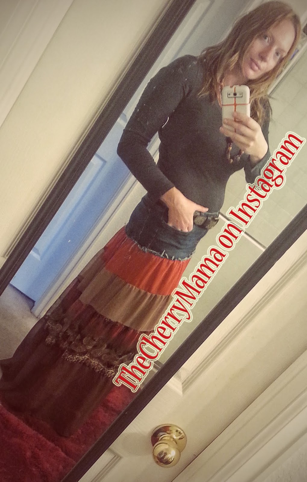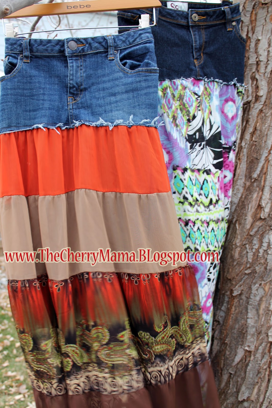 The cotton maxi was just a plain tube of fabric. So when I pinned it I flipped it inside out so I could pin some pleats in a more even manner. I attach the skirt under the denim and left the raw edge to fray.