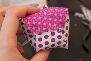 You will not need anything too fancy for these little guys. 2 triangles of various sizes. Totally free cut! Best way to use up scraps. They are great for ornaments, or fill with potpourri for drawer scents. They make cute gifts, or add on to gift labels.