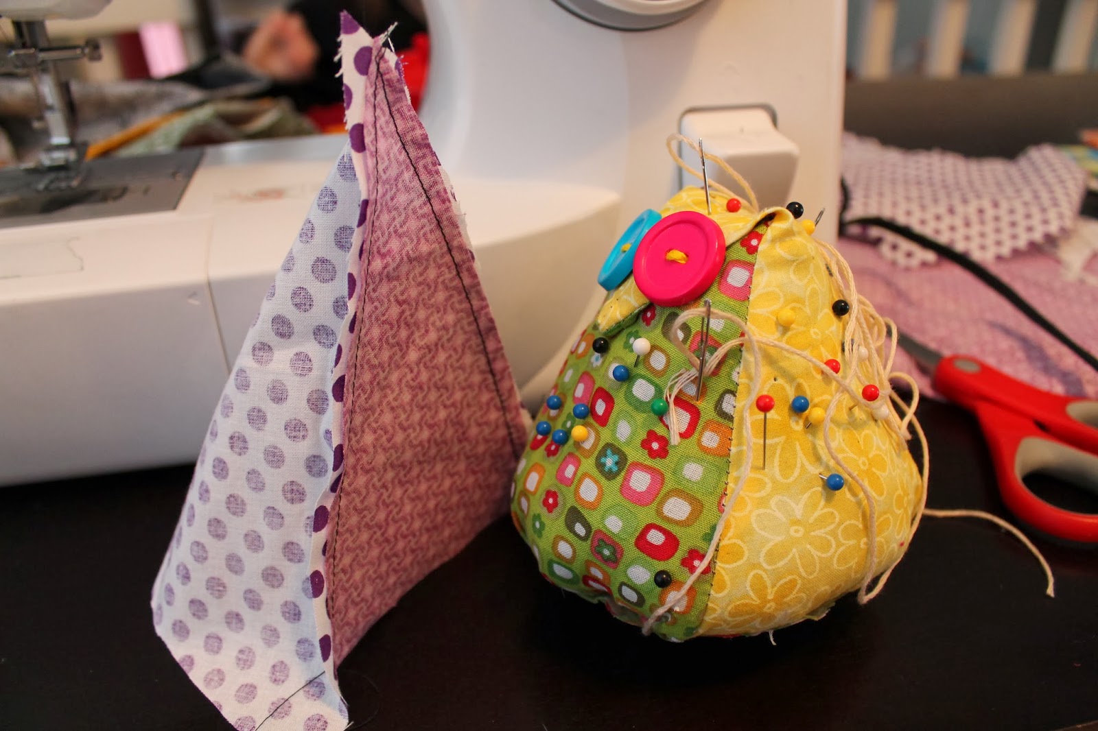 My pin cushion meeting his new friend! Did I mention, great pin cushions!