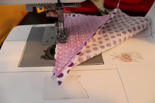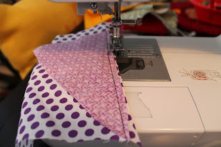 hen took the body fabric and folded it over. (One large triangle, one less seam)