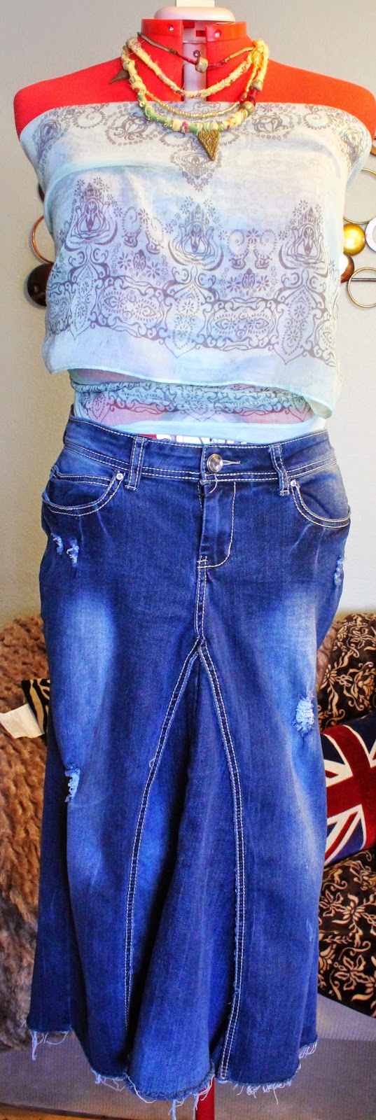 I did that with many summer dresses and maxi's. I gave life to some boring light weight skirts. Now with denim and add a pair of color tights you have a new fall skirt!